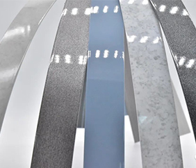 PVC封边条:主要成分为聚氯乙烯,经混炼、压延、真空吸塑等工艺而成的。产品普遍应用于家具、办公、厨具、教学设备、民用实验室等。厚度从0.3至3mm,宽度从12mm至80mm。产品有以下主要特点:表面平滑、无起泡、无拉纹、光泽度适中、表面和背面平整、厚度均匀、宽度一致、硬度合理、弹性高、质量好、耐磨性强、修边后封边侧面颜色与表面颜色接近、不发白、光泽度好、家具成品整体色协调。
